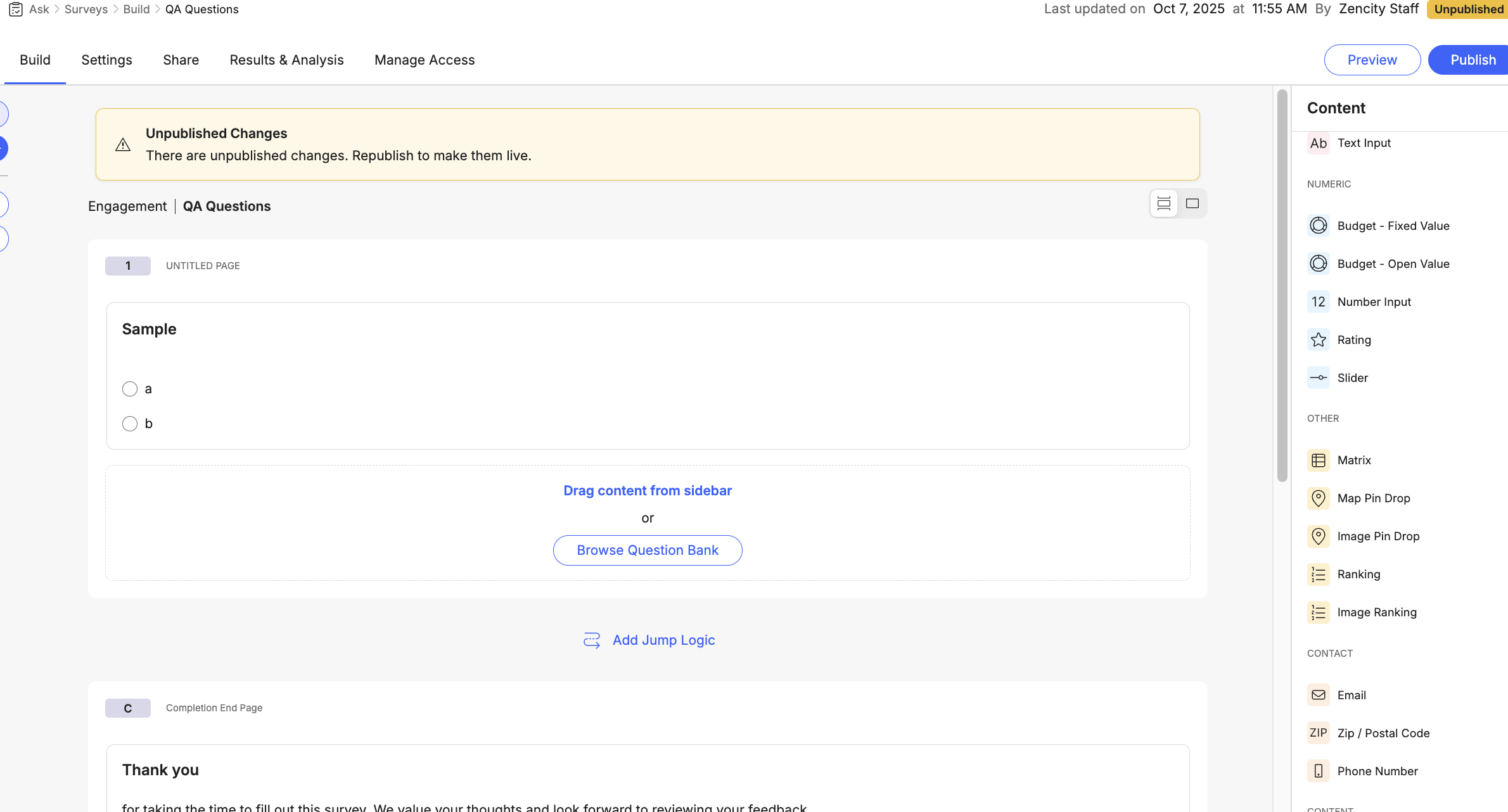- Navigate to Ask > Surveys > Build select your survey