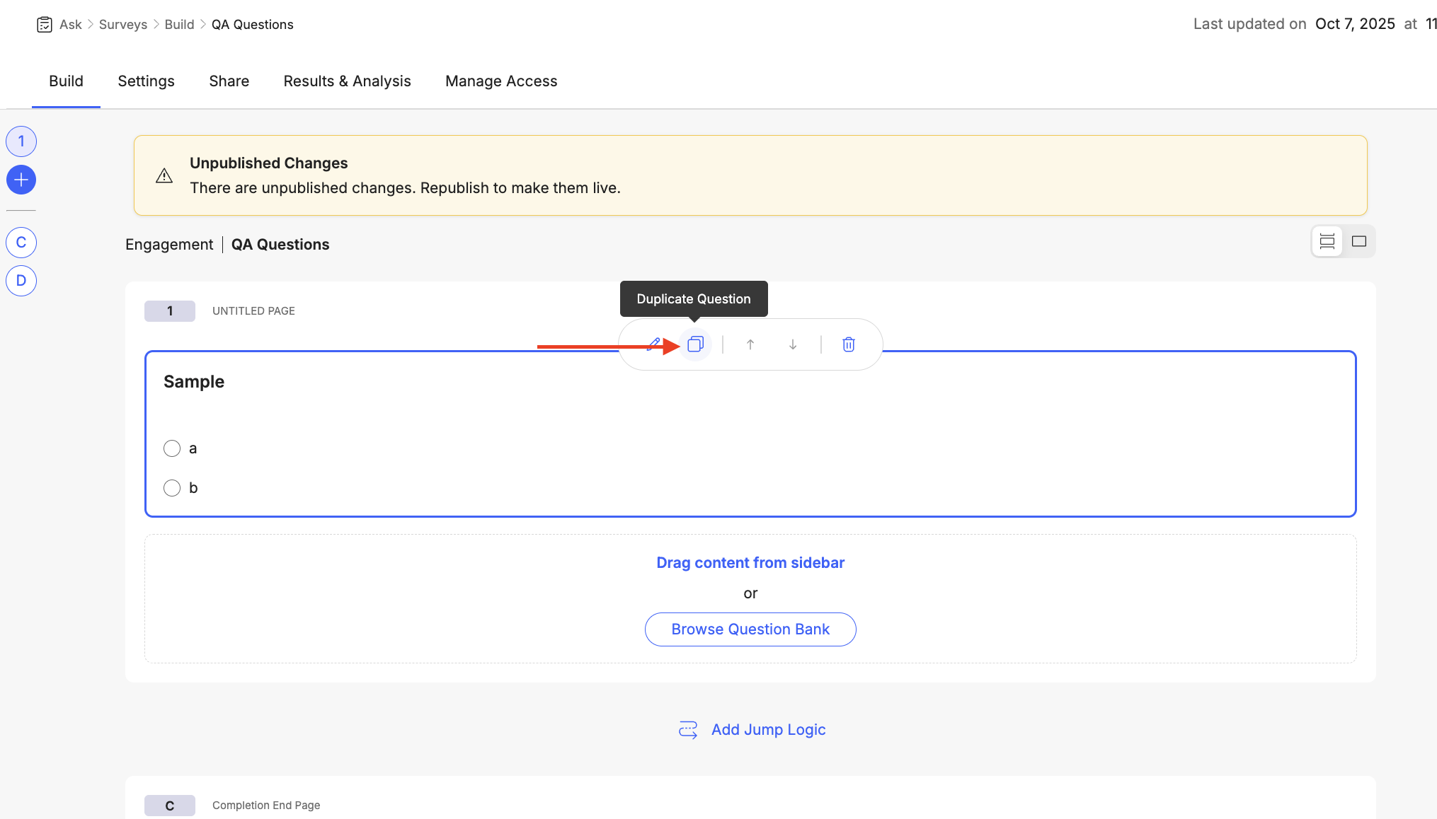 - Navigate to Ask > Surveys > Build select your survey