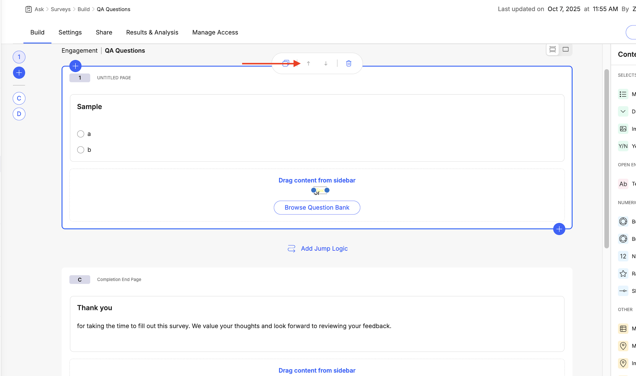 - Navigate to Ask > Surveys > Build select your survey