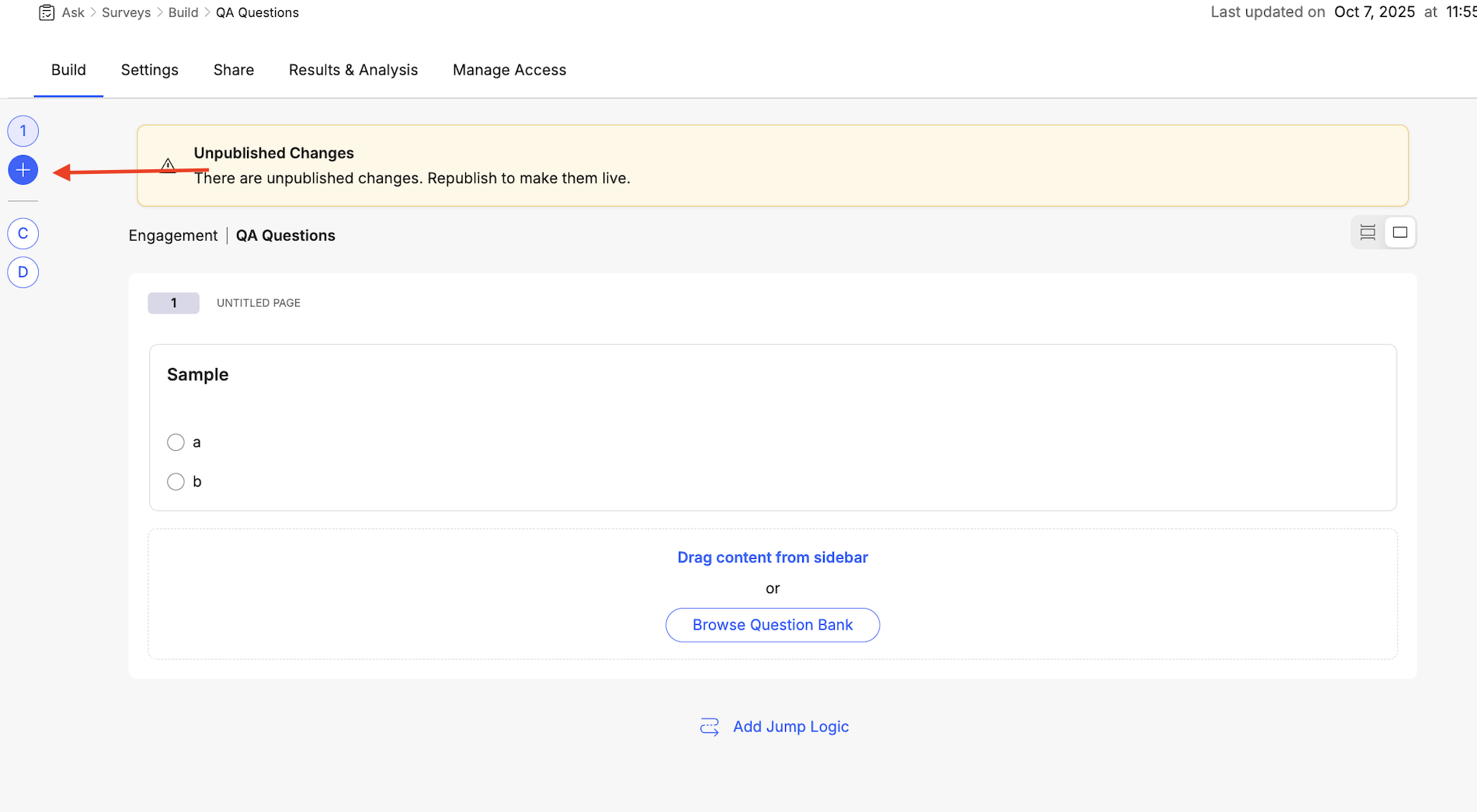 - Navigate to Ask > Surveys > Build select your survey