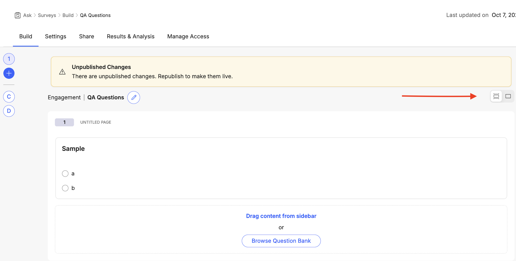 - Navigate to Ask > Surveys > Build select your survey