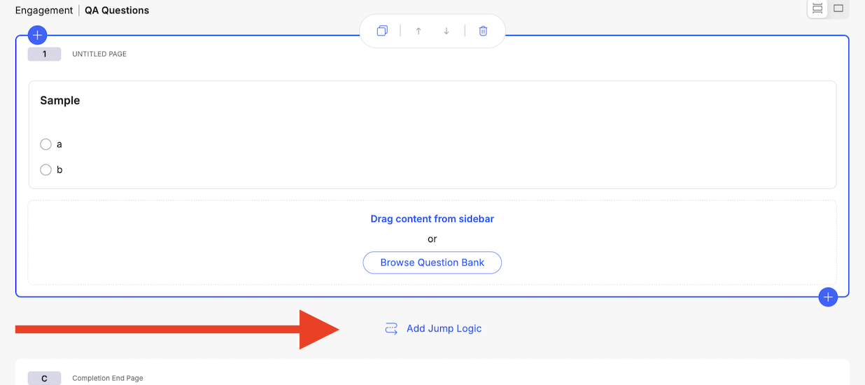 - Click "Add Jump Logic" at the bottom of a page.