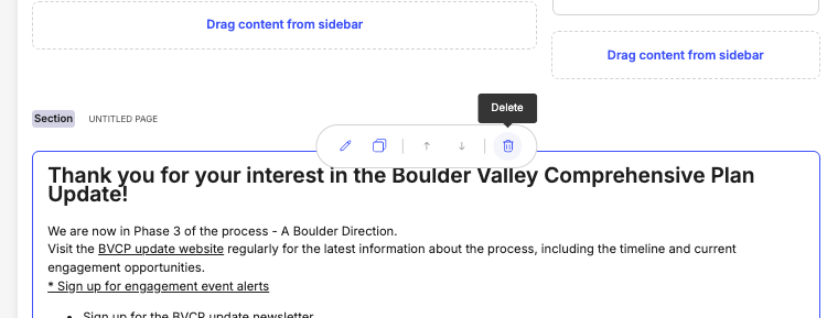 You can remove any individual content block from a Content Page or Project Page if it is no longer needed.